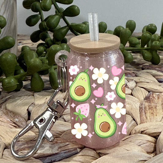 Avocados And Strawberries - Glass Can Keychain UV DTF Wrap