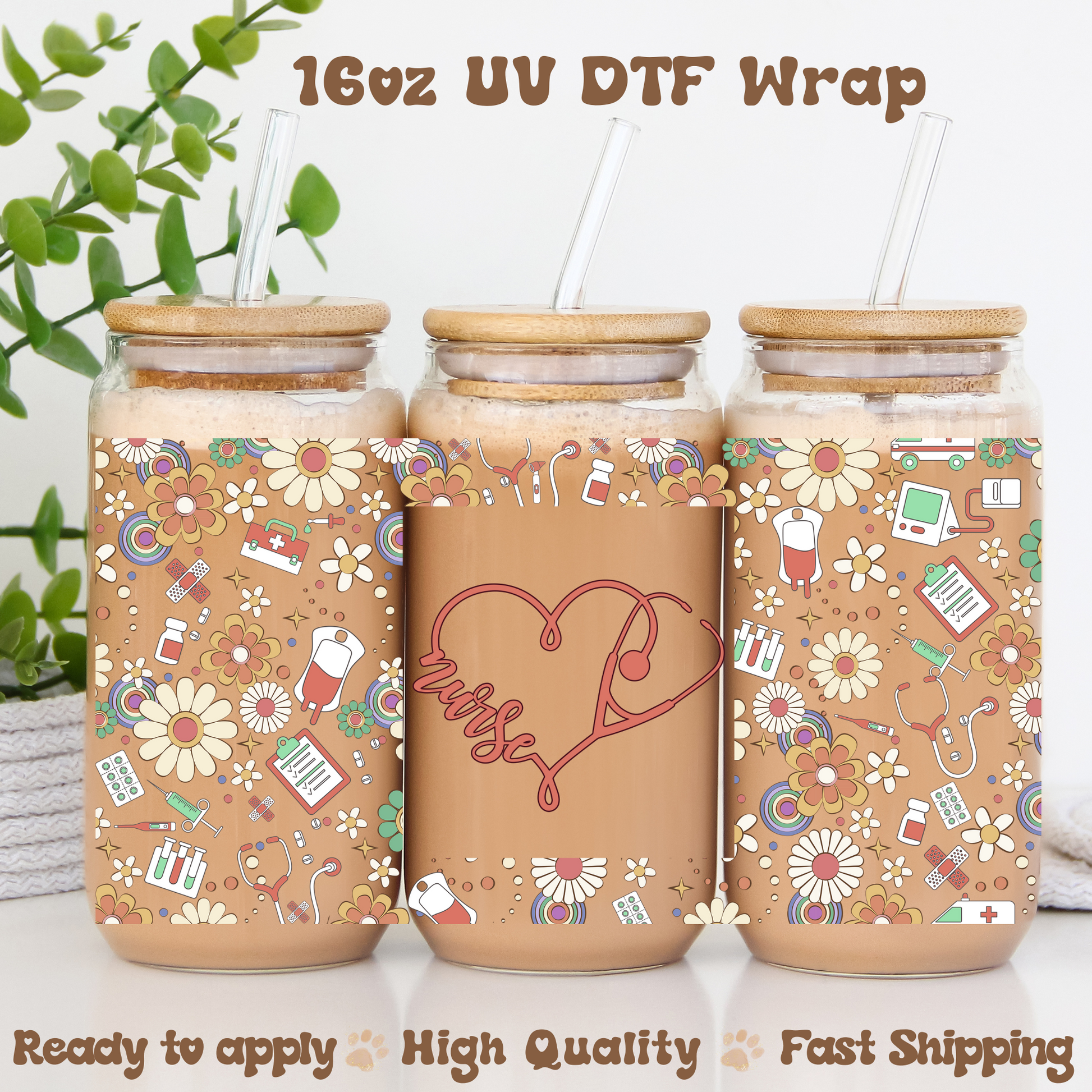 Boho Floral Nurse -16oz UV DTF Wrap