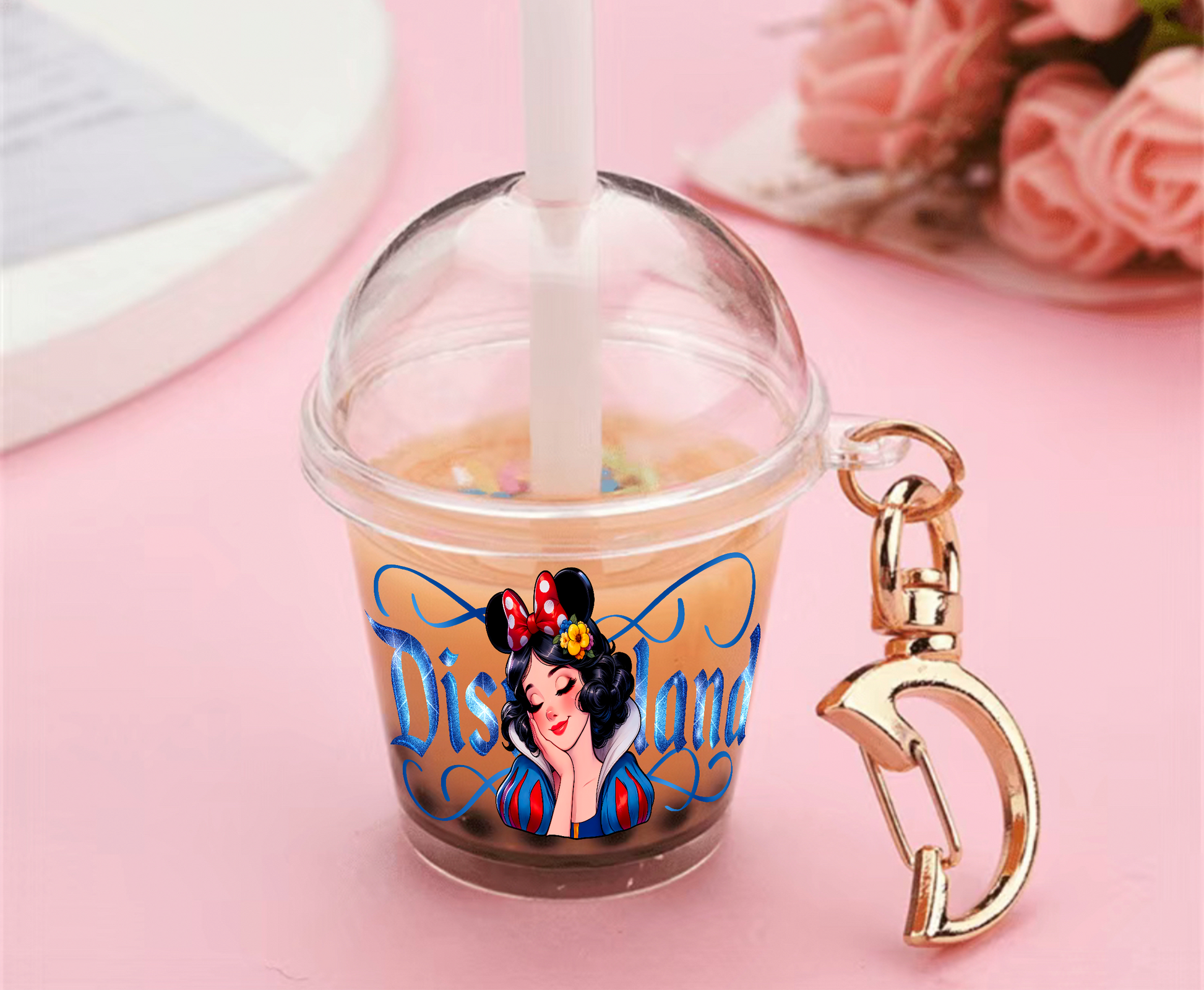 The cup keychains that I use in my reel are 1.4"H(flat lid) and 1.8"H(dome lid). However, these decals can be used on smaller or larger keychains with some adjustments :)
