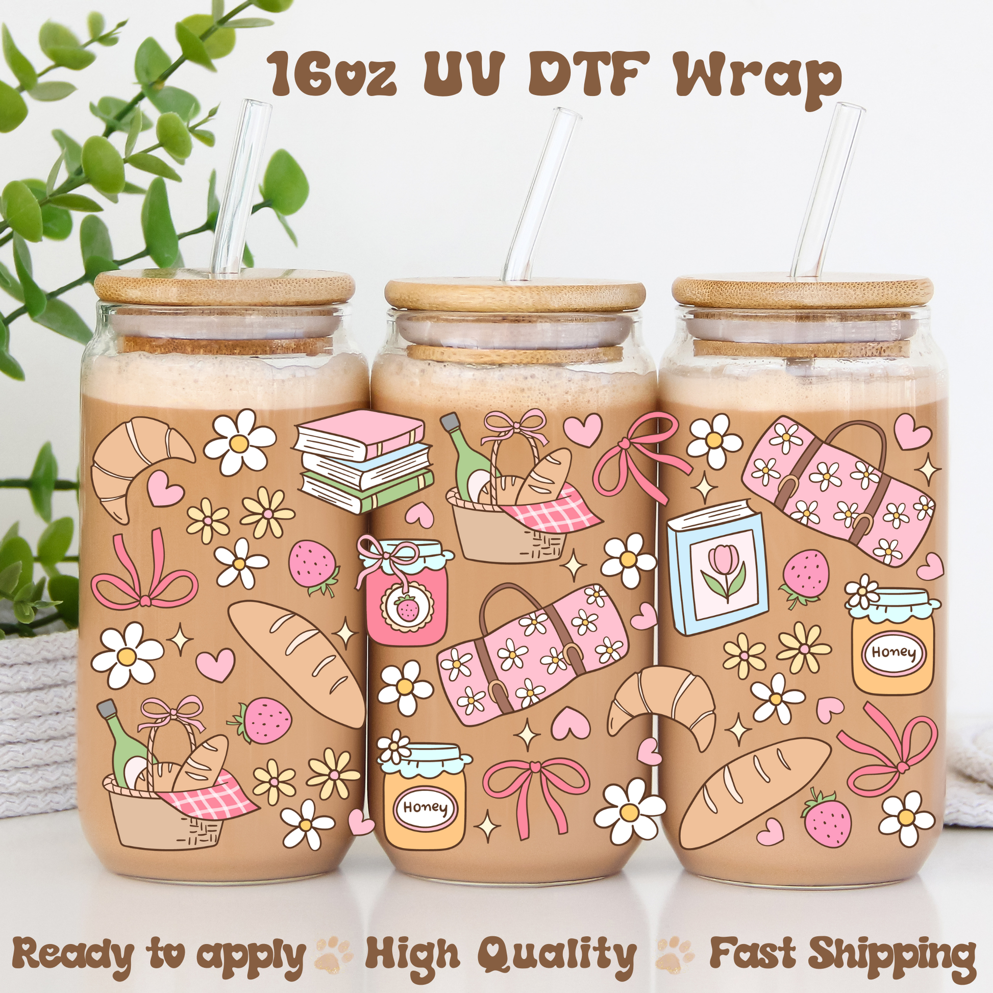 This listing is for one UVDTF transfer wrap for a Libbey 16oz glass cup (glass cup is NOT included)